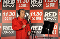 続く公開アフレコ。MCより本作への感想を問われると、「俺、今回の『REDリターンズ』には出演してないんだよね」「よく街でイ・ビョンホンですか?と呼び止められるんだけど、本編観たら似てなかったね!」と適当発言のオンパレード! これではアフレコ本番も適当か!?とスタッフをひやひやさせたが、そこは流石の高田。“テキトー”な決め台詞を“キッチリ”とこなし、あっという間に終了。抜群なアフレコにスタッフからは感嘆が漏れ、ファンからは「カッコ良かった―!!」と熱烈な声援を送られると、本人は「汗かいてたほうが一生懸命やってるように見えるんだけどね。さっきのサイン100円で結構です」と照れ隠しなのか適当に締めくくった。